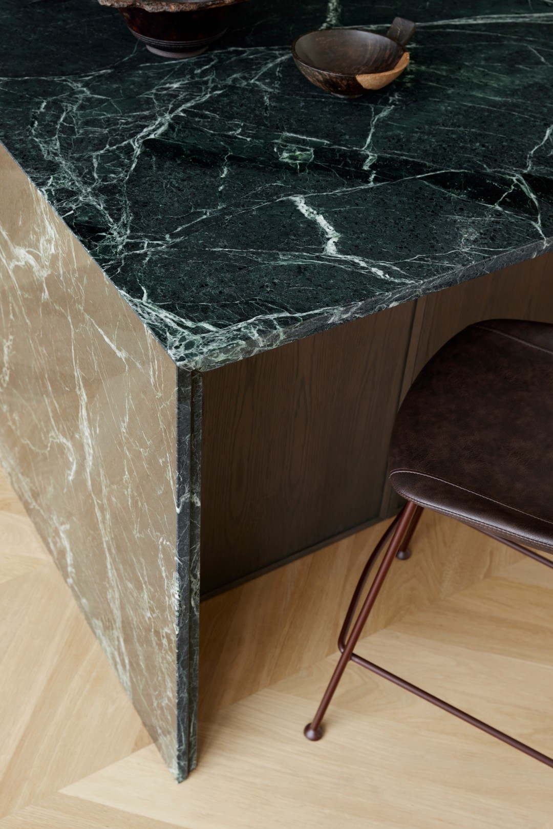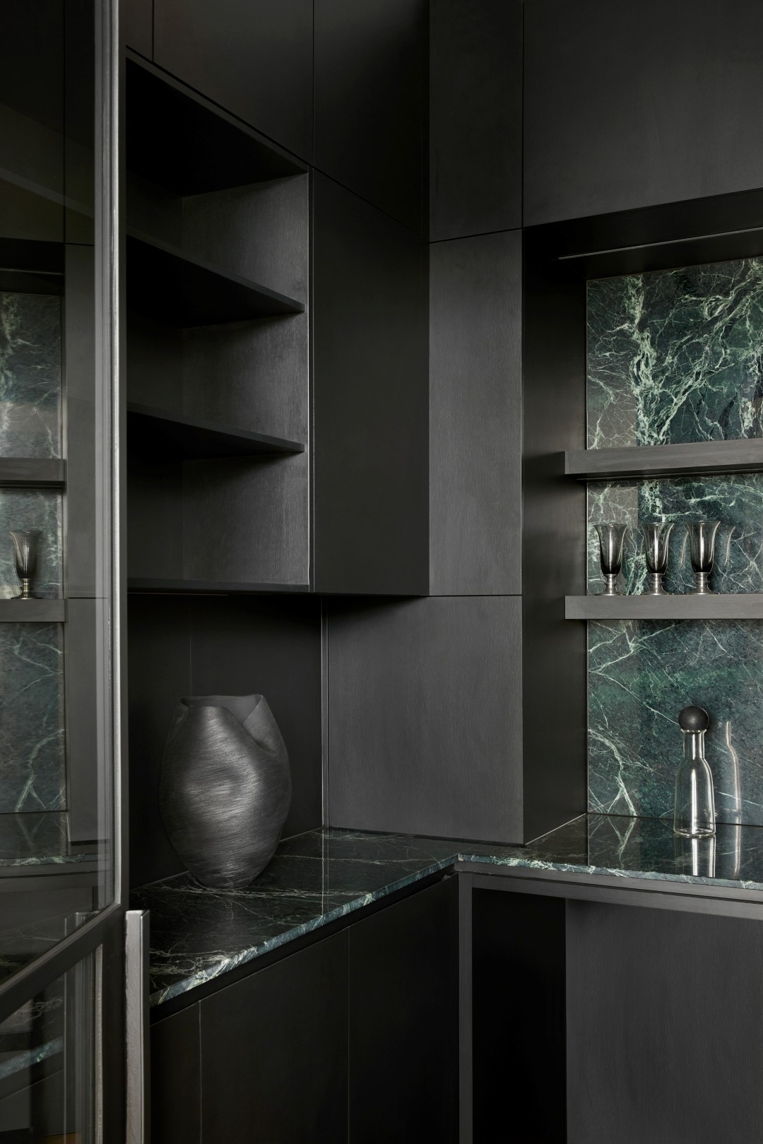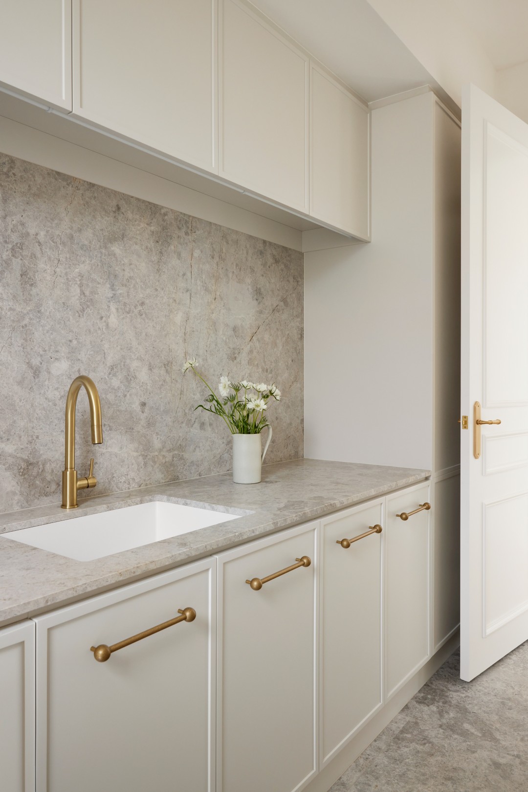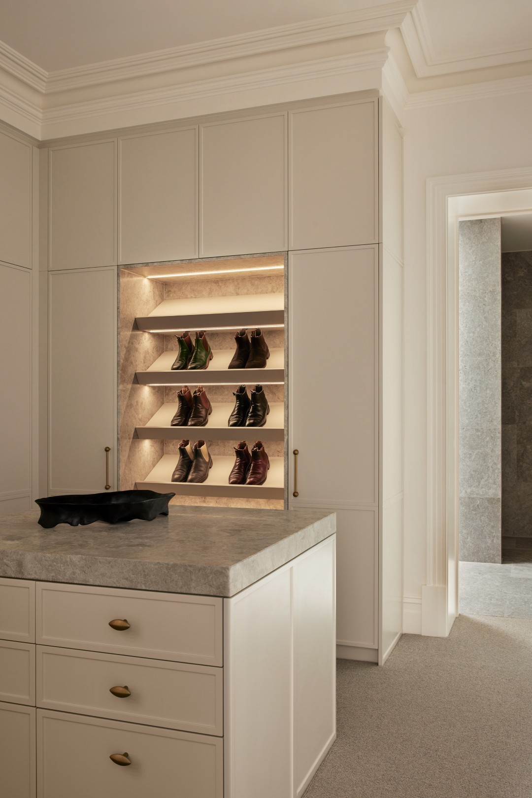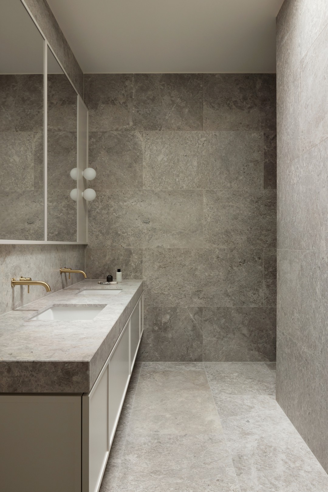 Material selections remain controlled and cohesive, from deep stained oak and Scalea Green stone to refined limestone and 2pac joinery. Solar, battery storage and home automation are integrated quietly into the home’s fabric.