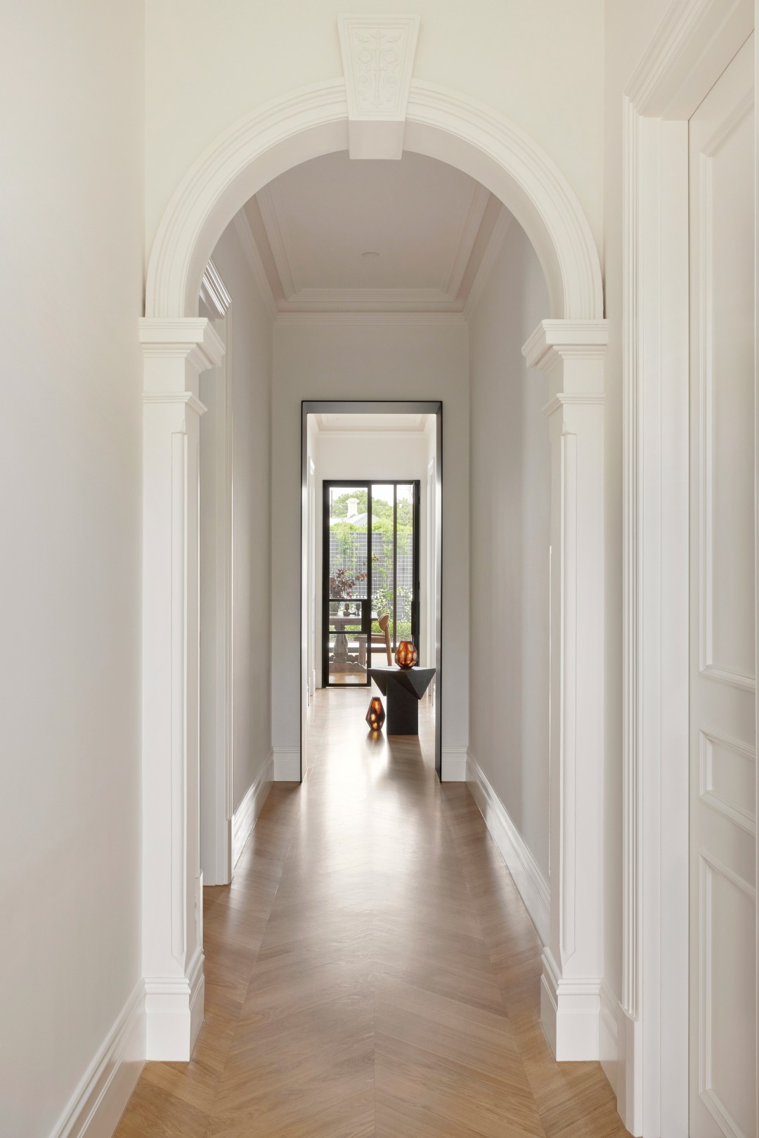 The brief was exact. Preserve and elevate the heritage. Create a timeless extension free from ornament and trend. Natural light shapes the plan, with the north facing living zone opening through full height glazing to create a bright yet grounded daily environment.